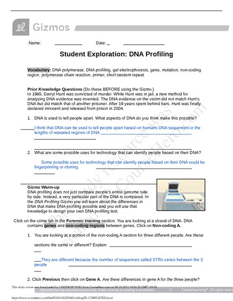 Reading Online STUDENT EXPLORATION DNA FINGERPRINT ANALYSIS ANSWER KEY Library Binding